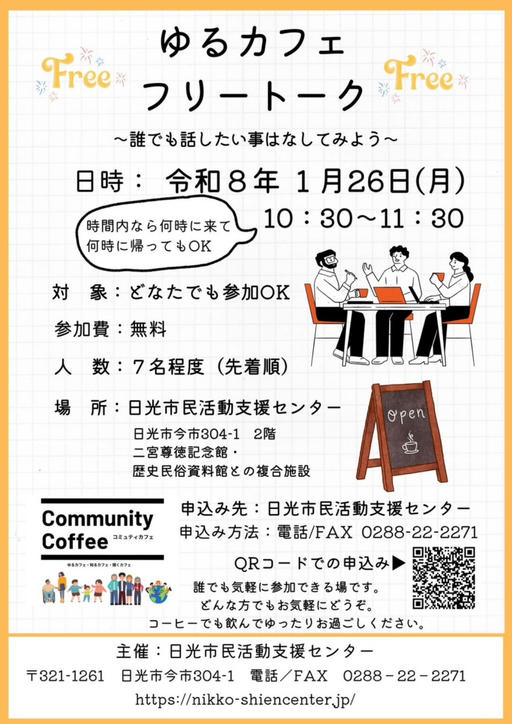 フリートークなので、お気軽にお越しください。