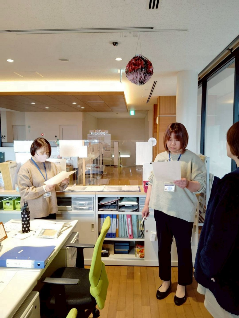 もしもの時にセンターを利用する皆さんを、安全に避難させられるように、私たち職員一同いつも以上に真剣な表情で参加しました。