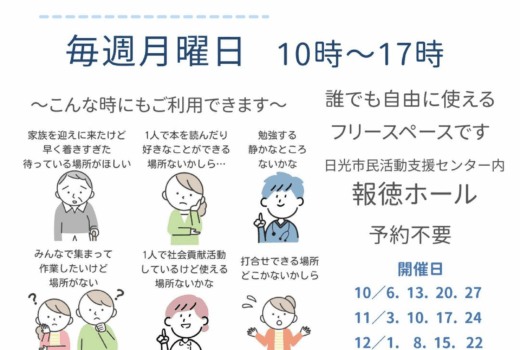 日光市民活動支援センターは、「NPO法人」「ボランティア」「社会貢献」など、地域をよくする活動に関心のある日光市民のみなさまをサポートする公共施設です。